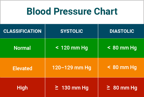 reliably range from 120-129 systolic and under 80 mm Hg diastolic. Individuals